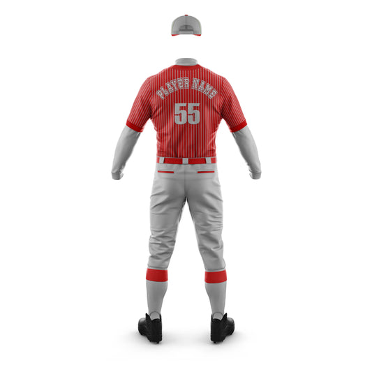 Vigor Vibe Baseball Uniforms Red With Grey Stripes | Personalized designs for your Team (Baseball-002)