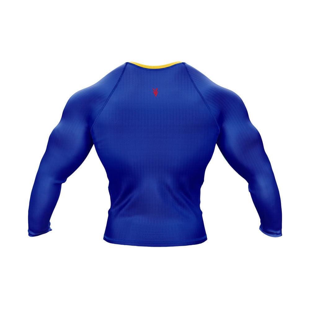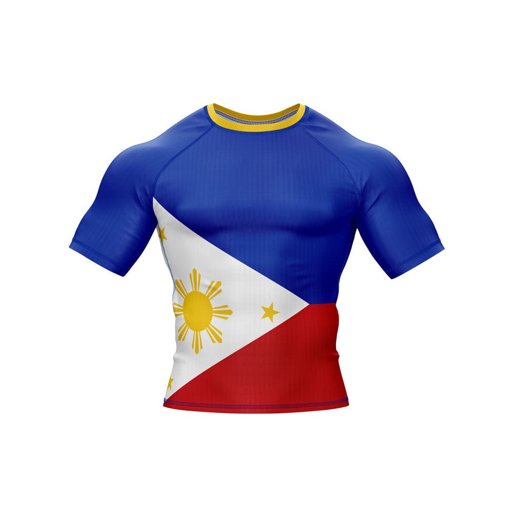 The premium flag sublimation design features long and short sleeves, a round neck, and a color scheme based on the Philippines flag. You can use it at the gym or in combat. It is made of spandex.