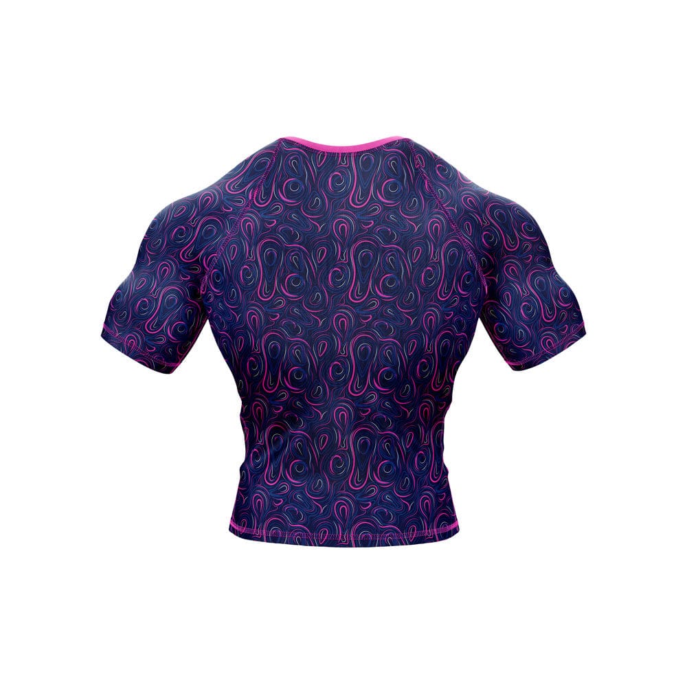 The premium sublimation design of the Smile Clown Mascot is printed on the front of the shirt; it has long and short sleeves, a round neck, and a dark blue and pink color scheme. Take it to the gym or combat. The fabric is spandex. It's got a nice texture on the back.