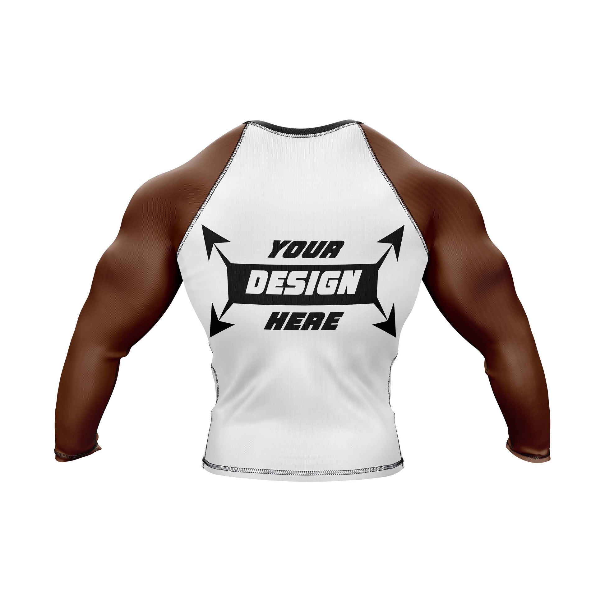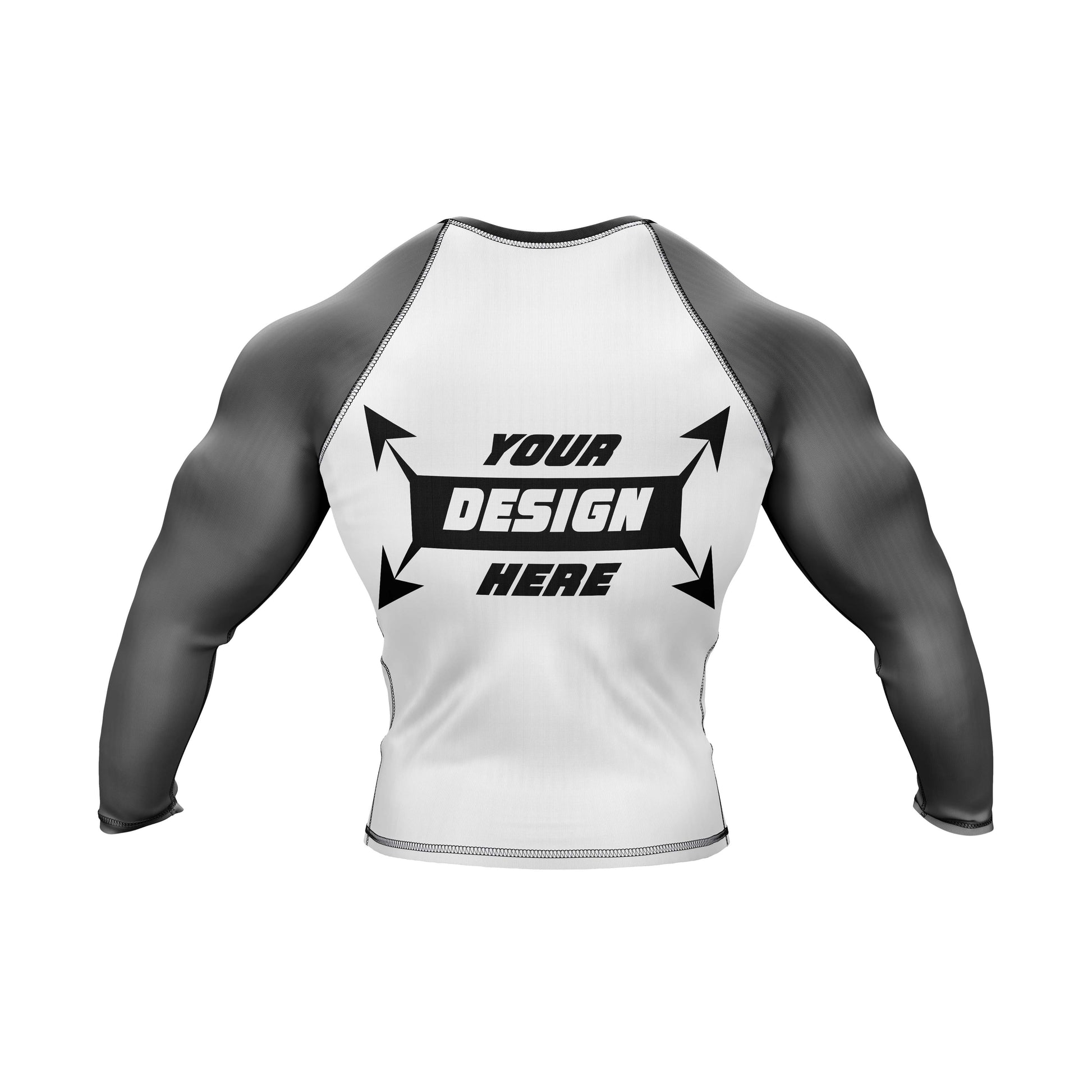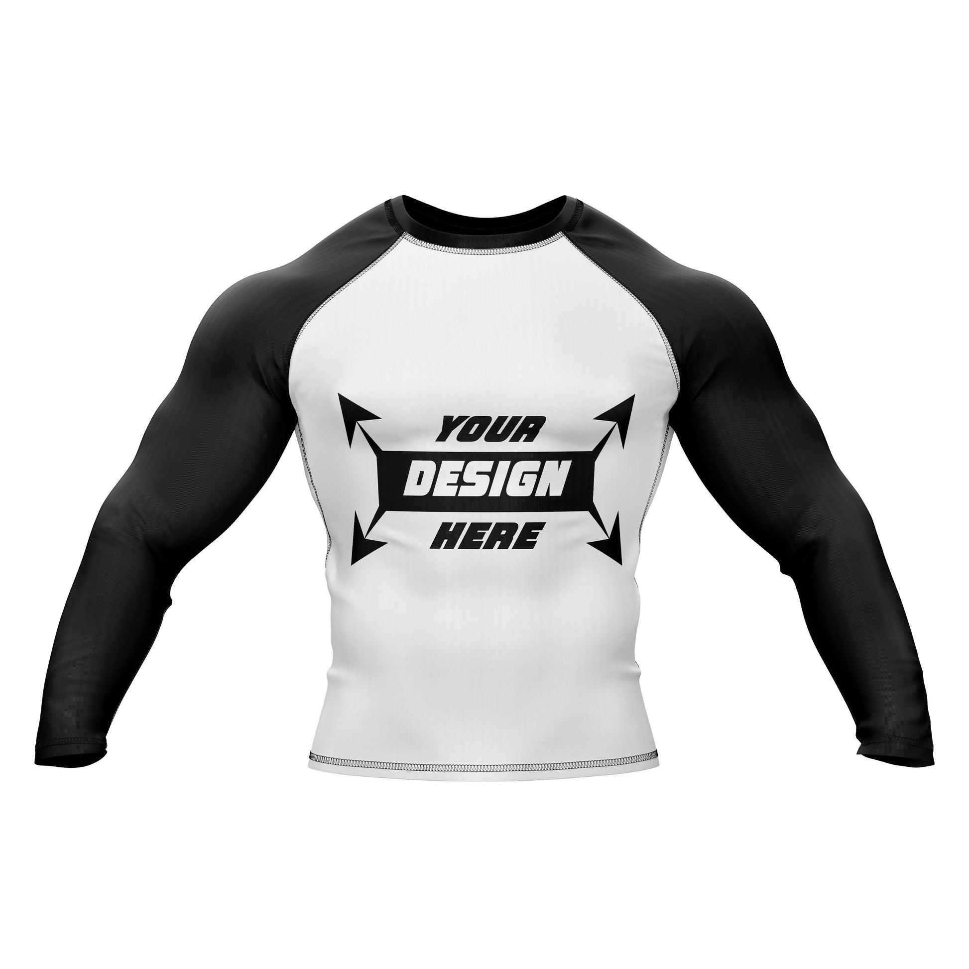 Deze Rash Guard in wit met zwarte lange mouwen is een meesterwerk van het beste vakmanschap. Een mengsel van polyester, katoen en spandexcompressie maakt het zacht, ademend en lichtgewicht. Bovendien zorgt het rekbare materiaal voor maximale mobiliteit en bewegingsvrijheid. Het absorbeert al het zweet en droogt snel. Naar behoren getest door trainers voor fitness, worstelen, sparren, MMA, fietsen, duiken, YOGA en surfen.