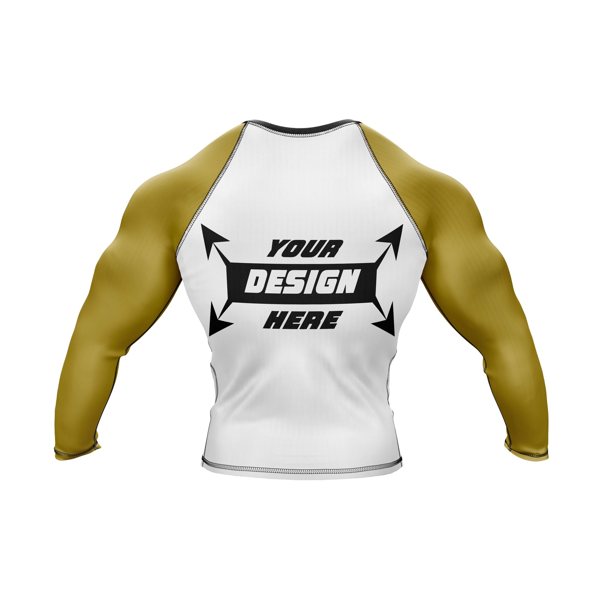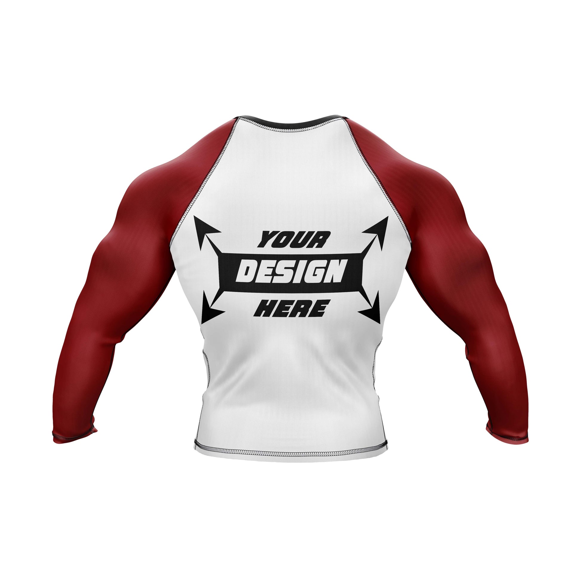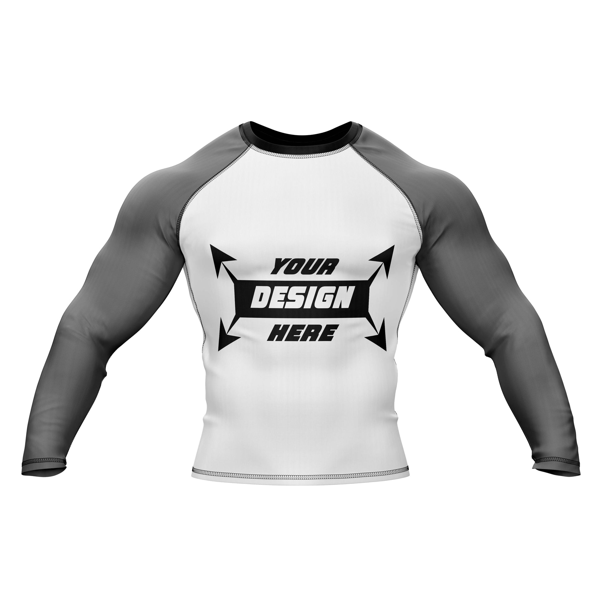 Deze Rash Guard in wit met zwarte lange mouwen is een meesterwerk van het beste vakmanschap. Een mengsel van polyester, katoen en spandexcompressie maakt het zacht, ademend en lichtgewicht. Bovendien zorgt het rekbare materiaal voor maximale mobiliteit en bewegingsvrijheid. Het absorbeert al het zweet en droogt snel. Naar behoren getest door trainers voor fitness, worstelen, sparren, MMA, fietsen, duiken, YOGA en surfen.