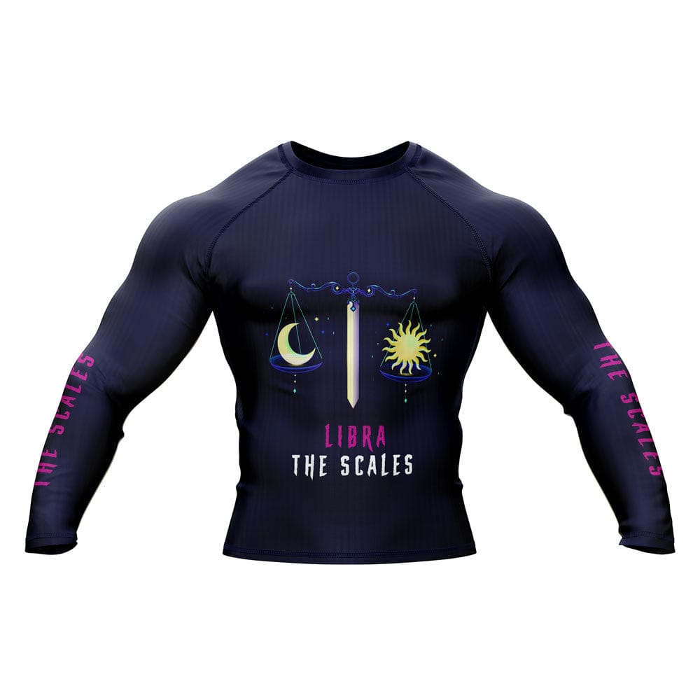 Libra Zodiac Sign The Scales Navy Blue Premium BJJ Rash Guard For Men
