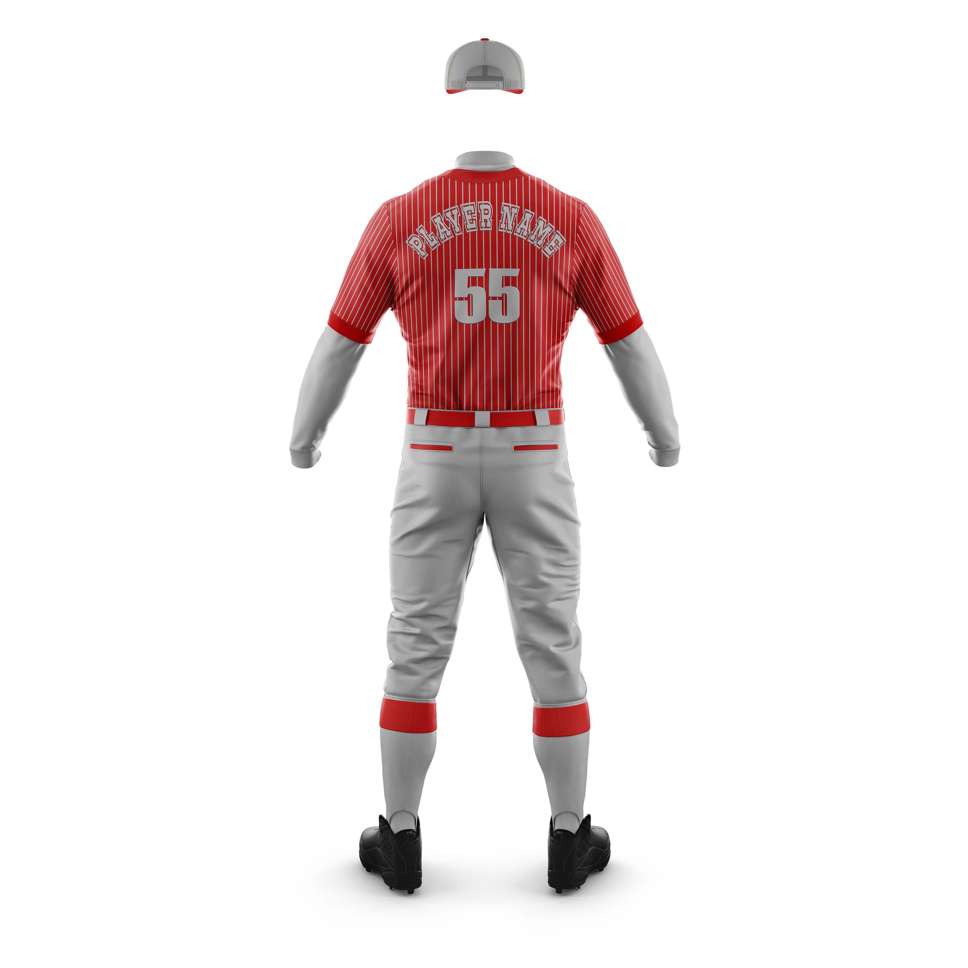 Vigor Vibe Baseball Uniforms Red With Grey Stripes | Personalized designs for your Team (Baseball-002)
