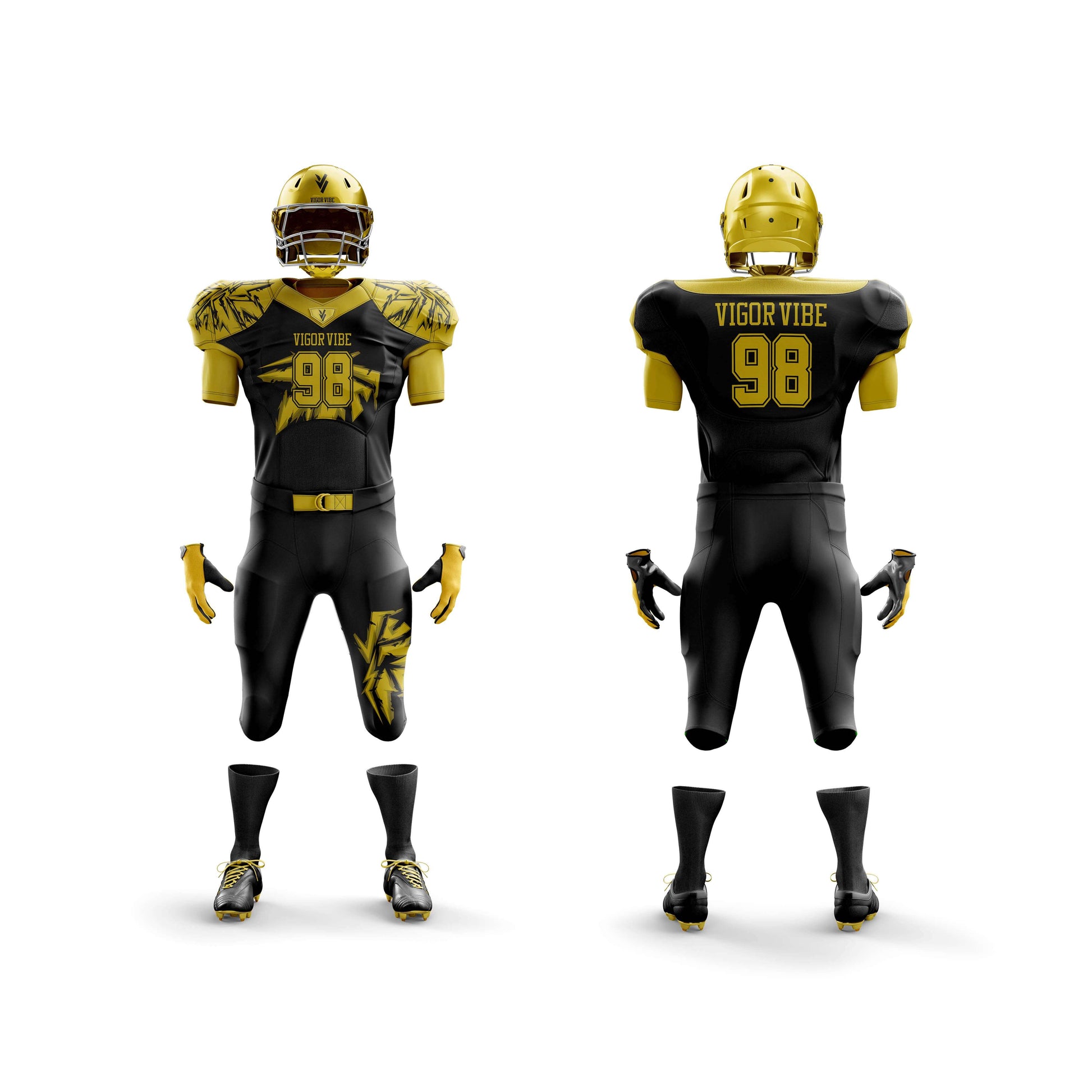 Vigor Vibe Black & Golden Football Uniform | Personalized designs for your Team (Football-001)